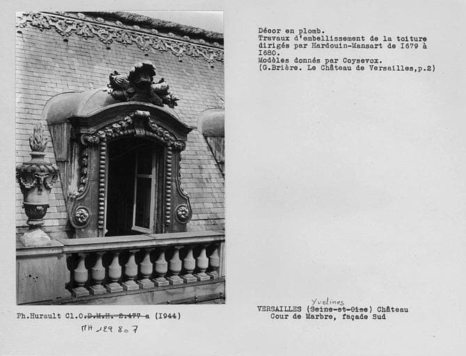 POP | Plateforme ouverte du patrimoineFaçade sud de la cour de marbre, ensemble extérieur d'une lucarne revêtue de plomb