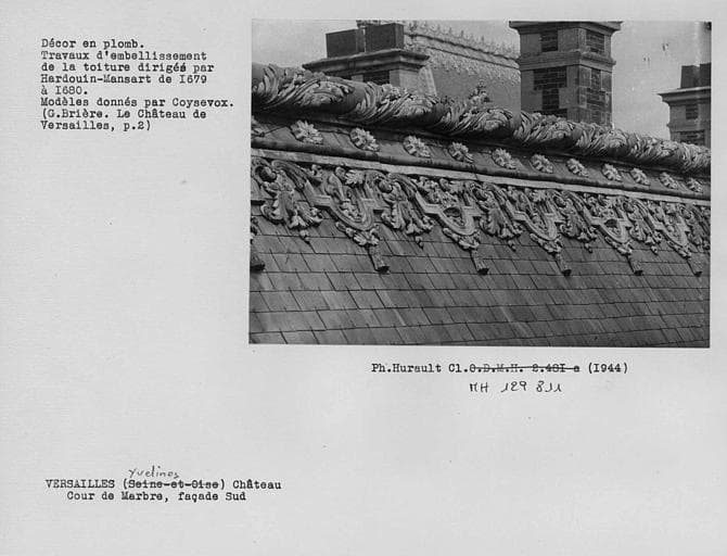 POP | Plateforme ouverte du patrimoineFaçade sud de la cour de marbre, décor en plomb de la toiture, crête et bavette en plomb