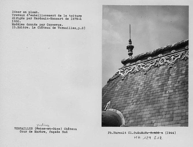 POP | Plateforme ouverte du patrimoineFaçade sud de la cour de marbre, décor en plomb de la toiture, crête et bavette en plomb