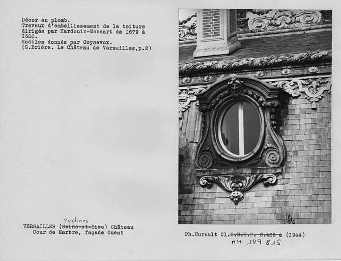 POP | Plateforme ouverte du patrimoineFaçade ouest de la cour de marbre, bibliothèque de Louis XV, lucarne décorée de plomb