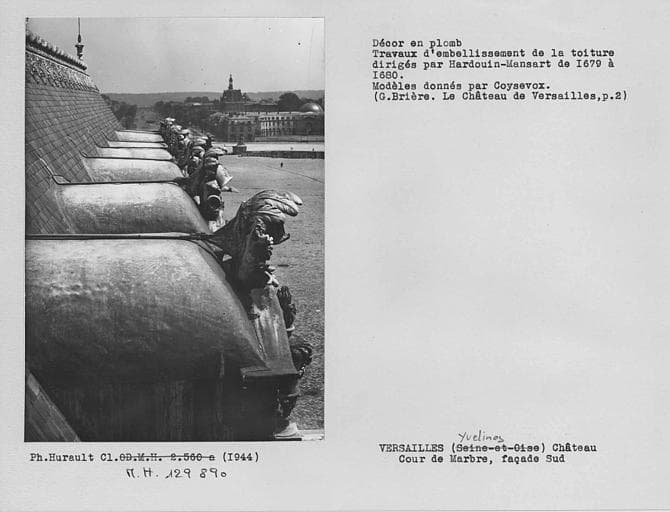 POP | Plateforme ouverte du patrimoineFaçade sud de la cour de marbre, décor en plomb de la toiture, lucarnes revêtues de plomb