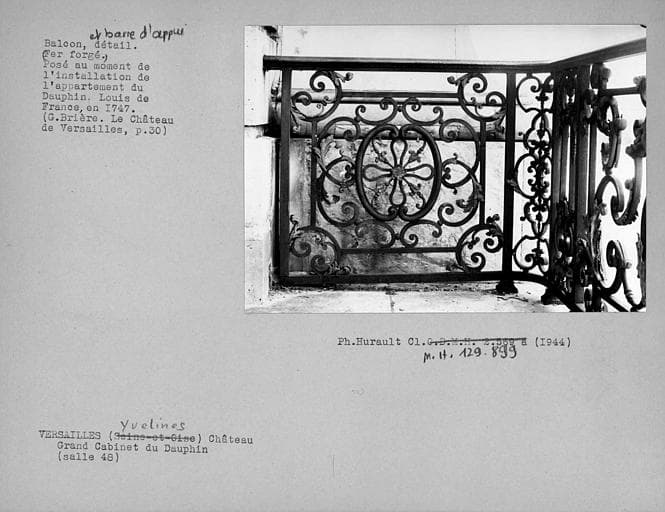POP | Plateforme ouverte du patrimoineBalcon en fer forgé à l'angle sud-ouest du Grand cabinet du Dauphin (salle 48)