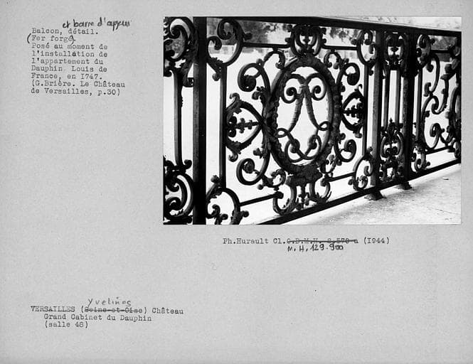 POP | Plateforme ouverte du patrimoineBalcon en fer forgé du Grand cabinet du Dauphin (salle 48), détail