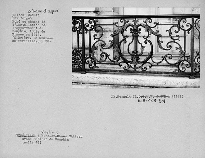POP | Plateforme ouverte du patrimoineBalcon en fer forgé du Grand cabinet du Dauphin (salle 48), détail