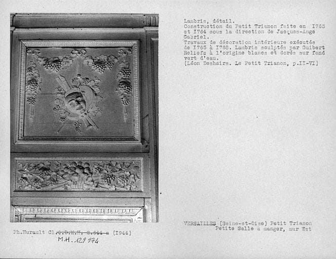 Décor de la petite salle-à-manger, détail de lambris du mur est