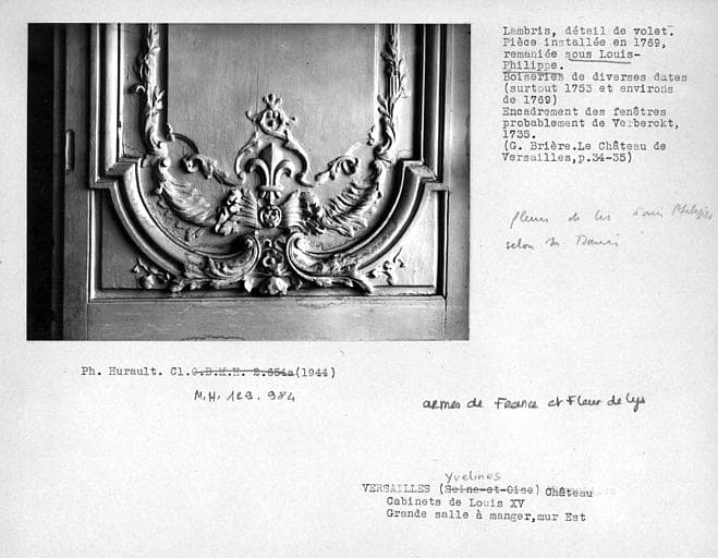 Fleur de lys ornant un volet de la grande salle-à-manger des cabinets de Louis XV, mur est