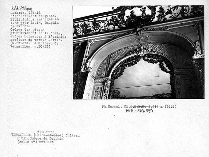 Lambris et encadrement de la glace du mur est de la bibliothèque du Dauphin (salle 47), détail