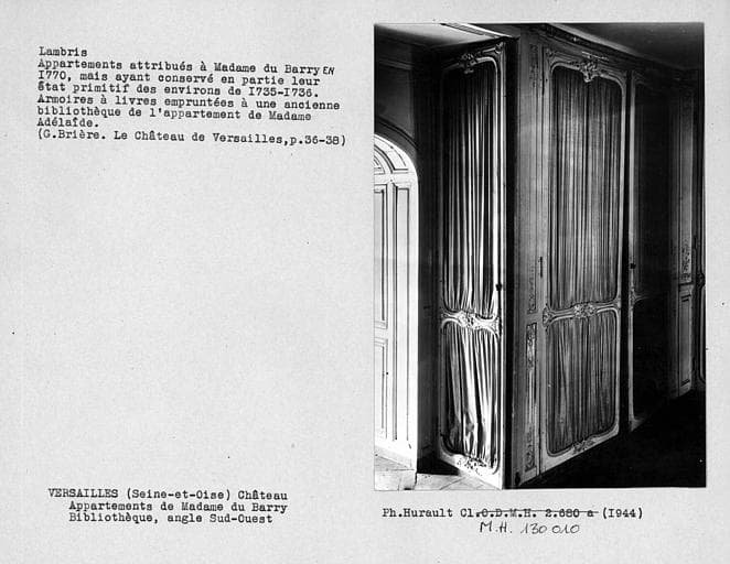 Décor des appartements de Madame du Barry, lambris de la bibliothèque, angle sud-ouest