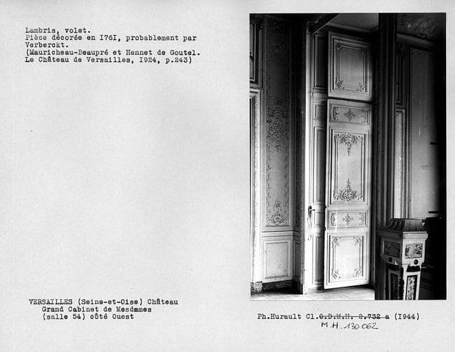 Décor du grand cabinet de Mesdames (salle 54), lambris, volet de la façade ouest