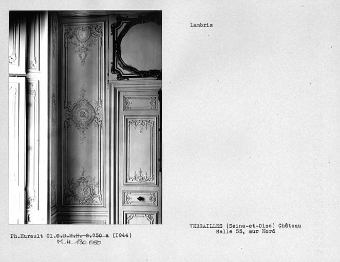 Décor de la salle 55, lambris à l'angle nord-ouest