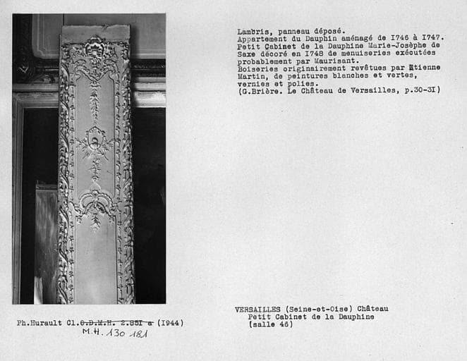 Décor du petit Cabinet de la Dauphine, lambris, panneau déposé