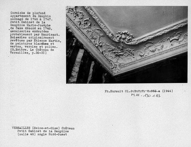 Décor du petit Cabinet de la Dauphine, angle nord-ouest de la corniche du plafond