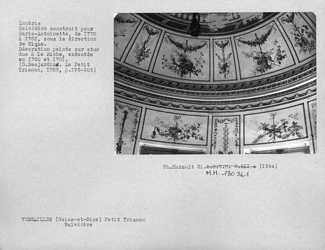 Décor peint sur stuc du pavillon de musique, dessus de porte et plafond