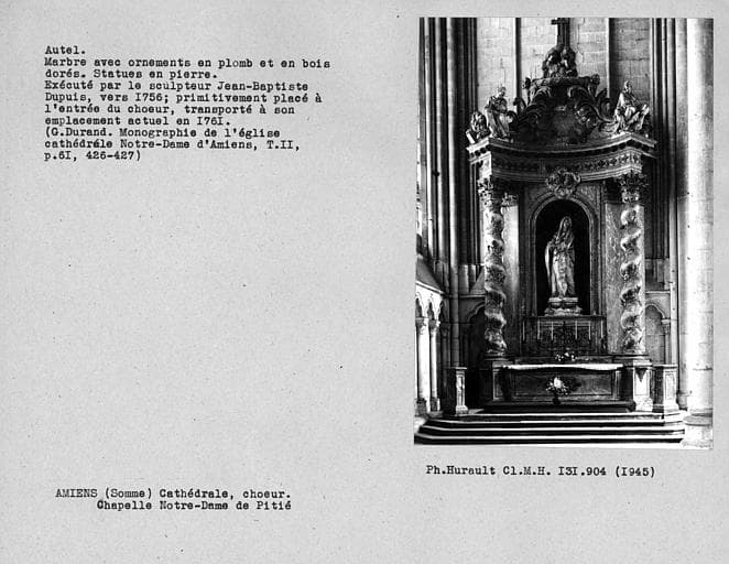 Autel en marbre avec ornements en plomb et en bois dorés, et retable de la chapelle Notre-Dame de Pitié, côté nord du choeur