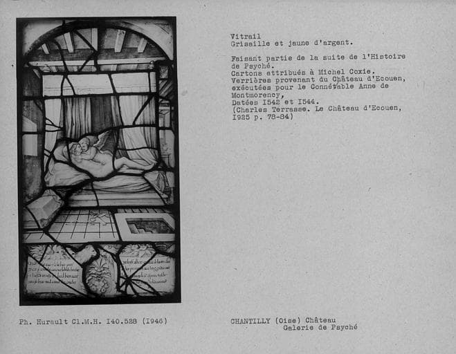 POP | Plateforme ouverte du patrimoineVitrail en grisaille et jaune d'argent dans la galerie de Psyché : Histoire de Psyché