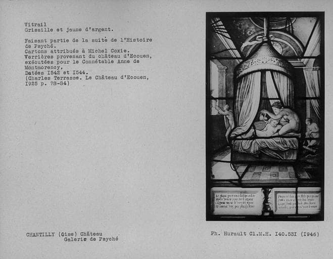 POP | Plateforme ouverte du patrimoineVitrail en grisaille et jaune d'argent dans la galerie de Psyché : Histoire de Psyché