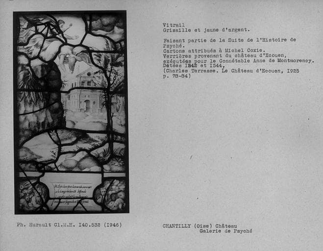 POP | Plateforme ouverte du patrimoineVitrail en grisaille et jaune d'argent dans la galerie de Psyché : Histoire de Psyché