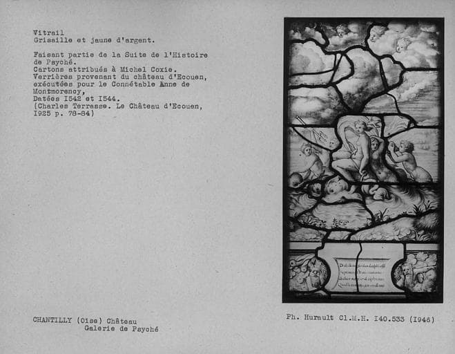 POP | Plateforme ouverte du patrimoineVitrail en grisaille et jaune d'argent dans la galerie de Psyché : Histoire de Psyché
