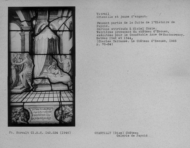 POP | Plateforme ouverte du patrimoineVitrail en grisaille et jaune d'argent dans la galerie de Psyché : Histoire de Psyché