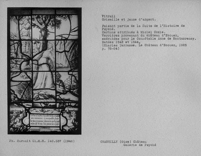 POP | Plateforme ouverte du patrimoineVitrail en grisaille et jaune d'argent dans la galerie de Psyché : Histoire de Psyché