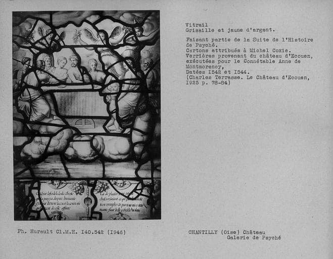 POP | Plateforme ouverte du patrimoineVitrail en grisaille et jaune d'argent dans la galerie de Psyché : Histoire de Psyché