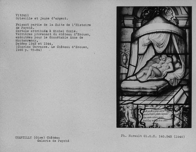 POP | Plateforme ouverte du patrimoineVitrail en grisaille et jaune d'argent dans la galerie de Psyché : Histoire de Psyché