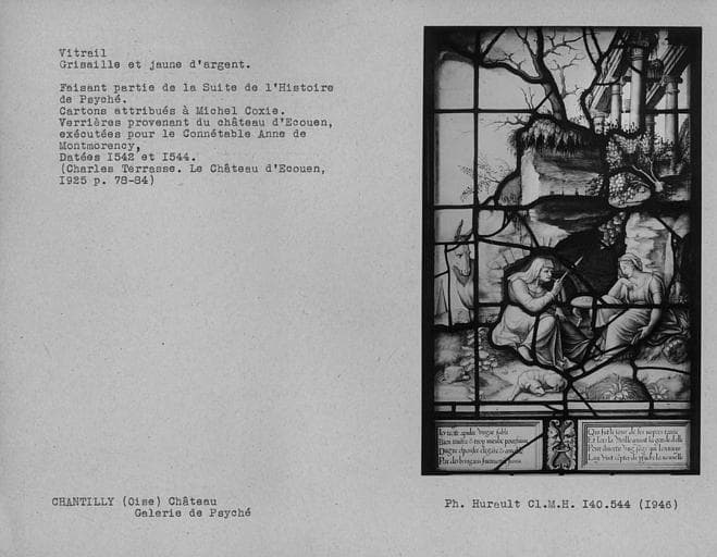 POP | Plateforme ouverte du patrimoineVitrail en grisaille et jaune d'argent dans la galerie de Psyché : Histoire de Psyché