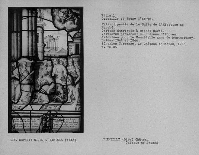POP | Plateforme ouverte du patrimoineVitrail en grisaille et jaune d'argent dans la galerie de Psyché : Histoire de Psyché