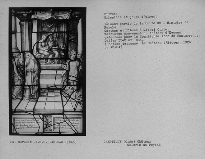 POP | Plateforme ouverte du patrimoineVitrail en grisaille et jaune d'argent dans la galerie de Psyché : Histoire de Psyché