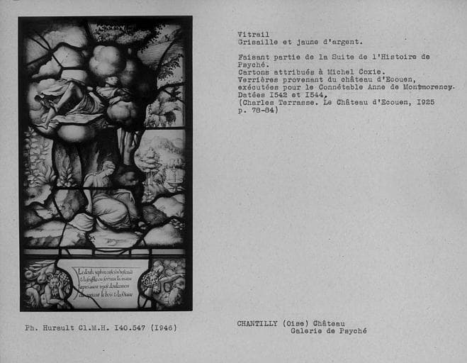 POP | Plateforme ouverte du patrimoineVitrail en grisaille et jaune d'argent dans la galerie de Psyché : Histoire de Psyché