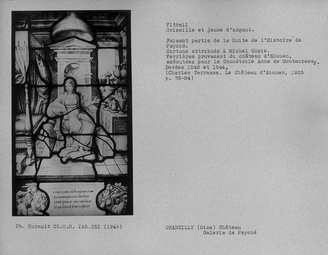 POP | Plateforme ouverte du patrimoineVitrail en grisaille et jaune d'argent dans la galerie de Psyché : Histoire de Psyché