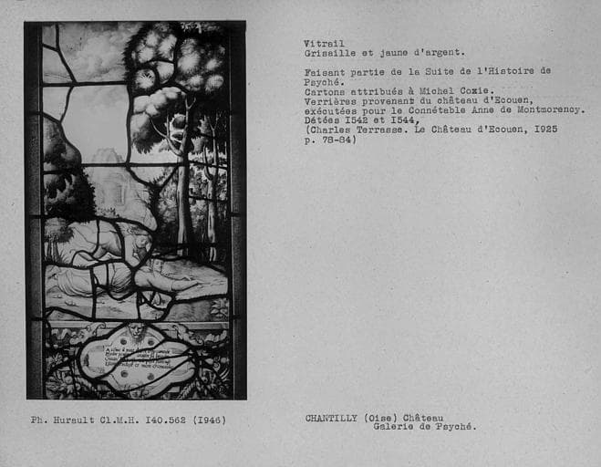 POP | Plateforme ouverte du patrimoineVitrail en grisaille et jaune d'argent dans la galerie de Psyché : Histoire de Psyché