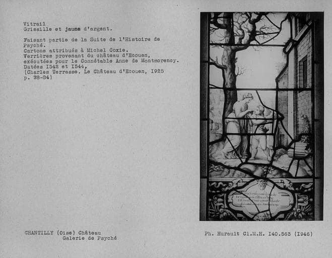 POP | Plateforme ouverte du patrimoineVitrail en grisaille et jaune d'argent dans la galerie de Psyché : Histoire de Psyché
