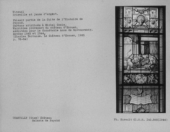 POP | Plateforme ouverte du patrimoineVitrail en grisaille et jaune d'argent dans la galerie de Psyché : Histoire de Psyché