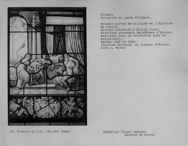 POP | Plateforme ouverte du patrimoineVitrail en grisaille et jaune d'argent dans la galerie de Psyché : Histoire de Psyché
