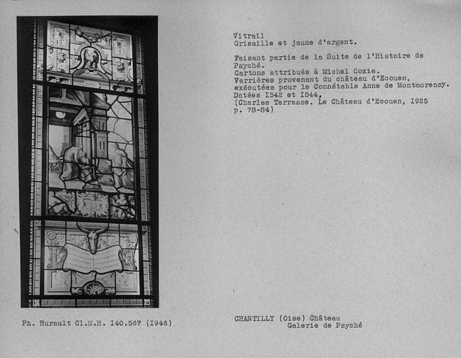 POP | Plateforme ouverte du patrimoineVitrail en grisaille et jaune d'argent dans la galerie de Psyché : Histoire de Psyché