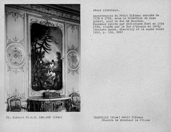 Décor de la chambre de Monsieur le Prince, panneau peint, détail de la partie centrale du côté opposé aux fenêtres