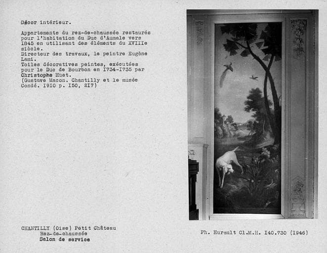Décor des appartements du rez-de-chaussée restaurés pour l'habitation du Duc d'Aumale, panneau à droite de la cheminée du salon de la chambre jaune