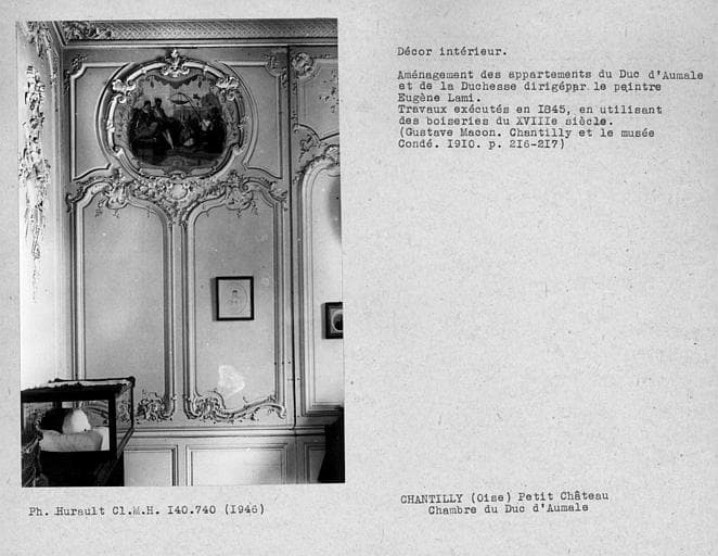 Décor intérieur des appartements du rez-de chaussée restaurés pour l'habitation du Duc d'Aumale, boiserie à gauche du lit de la chambre du Duc