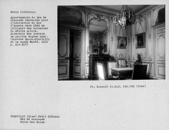 Décor des appartements du rez-de-chaussée restaurés pour l'habitation du Duc d'Aumale, salon des Guises