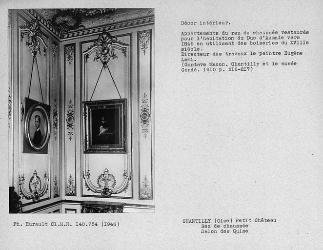 Décor des appartements du rez-de-chaussée restaurés pour l'habitation du Duc d'Aumale, boiseries du salon des Guises