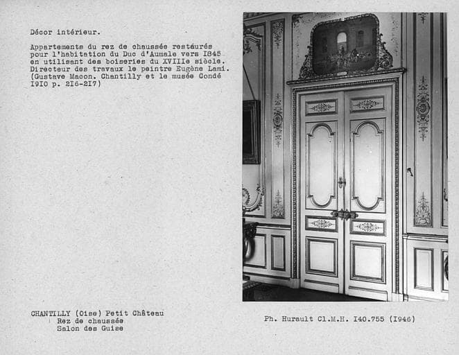 Décor des appartements du rez-de-chaussée restaurés pour l'habitation du Duc d'Aumale, salon des Guises, porte
