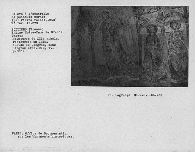 Relevé à l'aquarelle de peinture murale, Pierre Valade, 1948