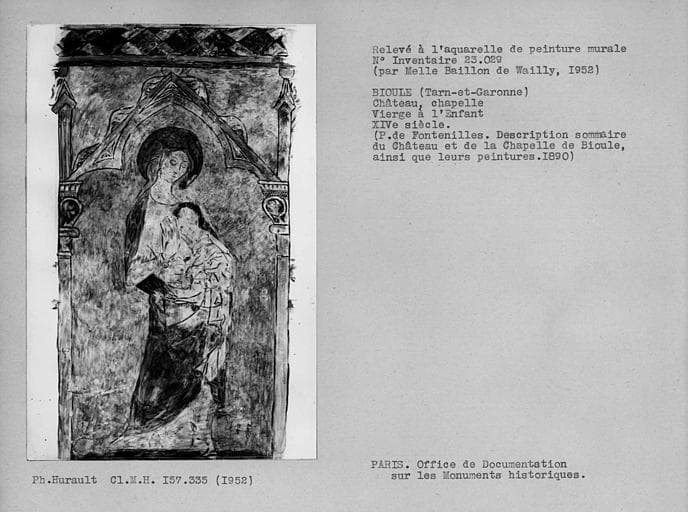 Relevé de peinture murale de la chapelle : Vierge à l'Enfant