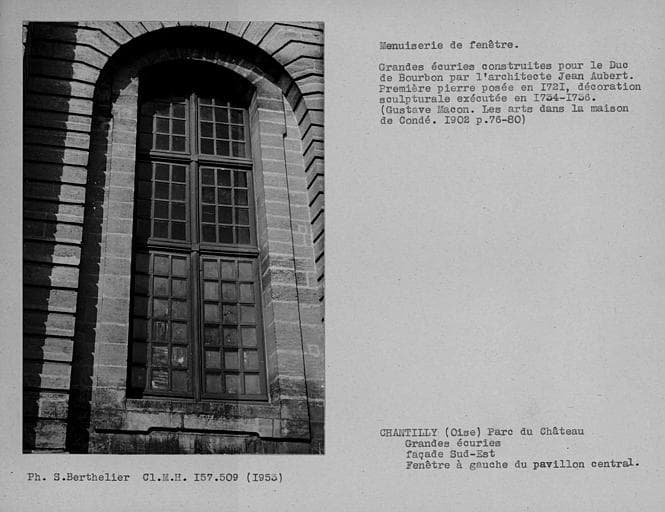Menuiserie de la première fenêtre à gauche du pavillon central, façade sud-est des grandes écuries