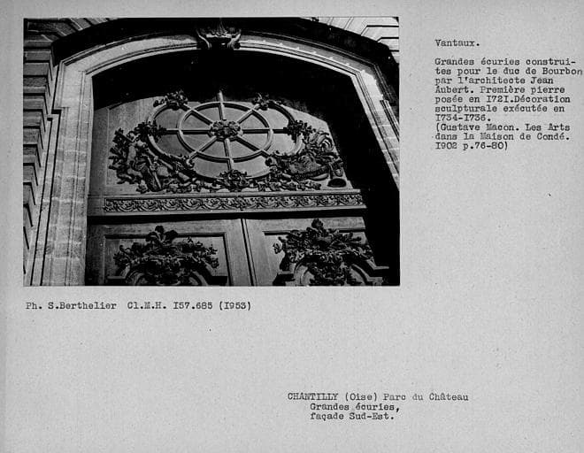 Détail de l'imposte des vantaux de la porte principale des écuries