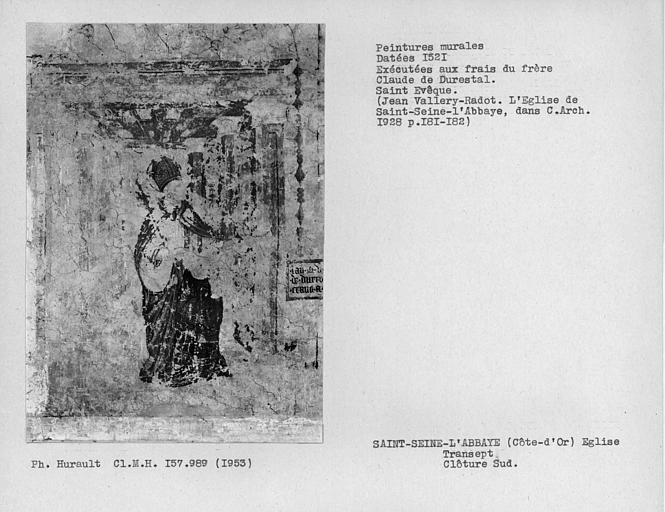 Clôture du transept, peinture murale de la partie gauche du côté sud : évêque