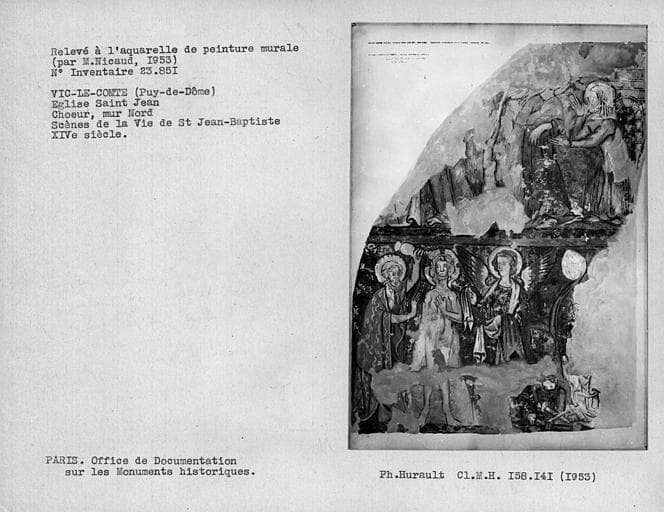 POP | Plateforme ouverte du patrimoineRelevé de peinture murale des registres supérieurs du mur nord du choeur : Baptême du Christ, Marie et Elisabeth