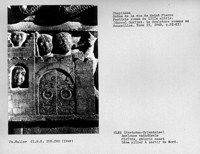 POP | Plateforme ouverte du patrimoineChapiteau du troisième pilier, partie est : Le Christ et Saint-Pierre, galerie ouest du cloître, quatrième travée à partir du nord