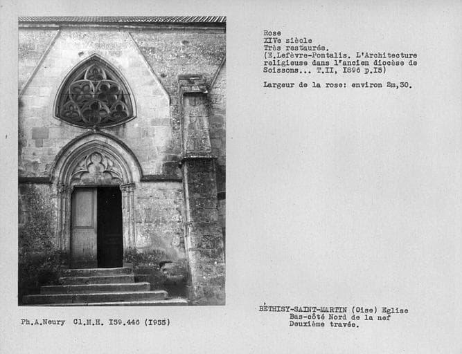 Porte et rose triangulaire de la deuxième travée côté nord de la nef, restaurée